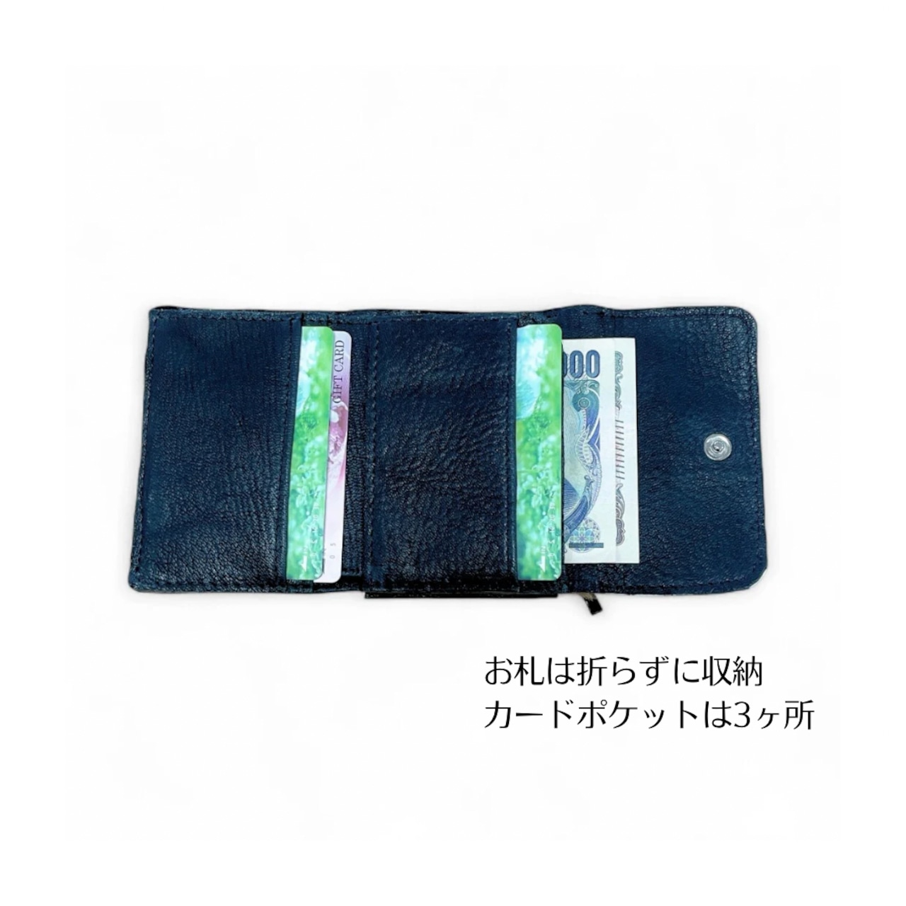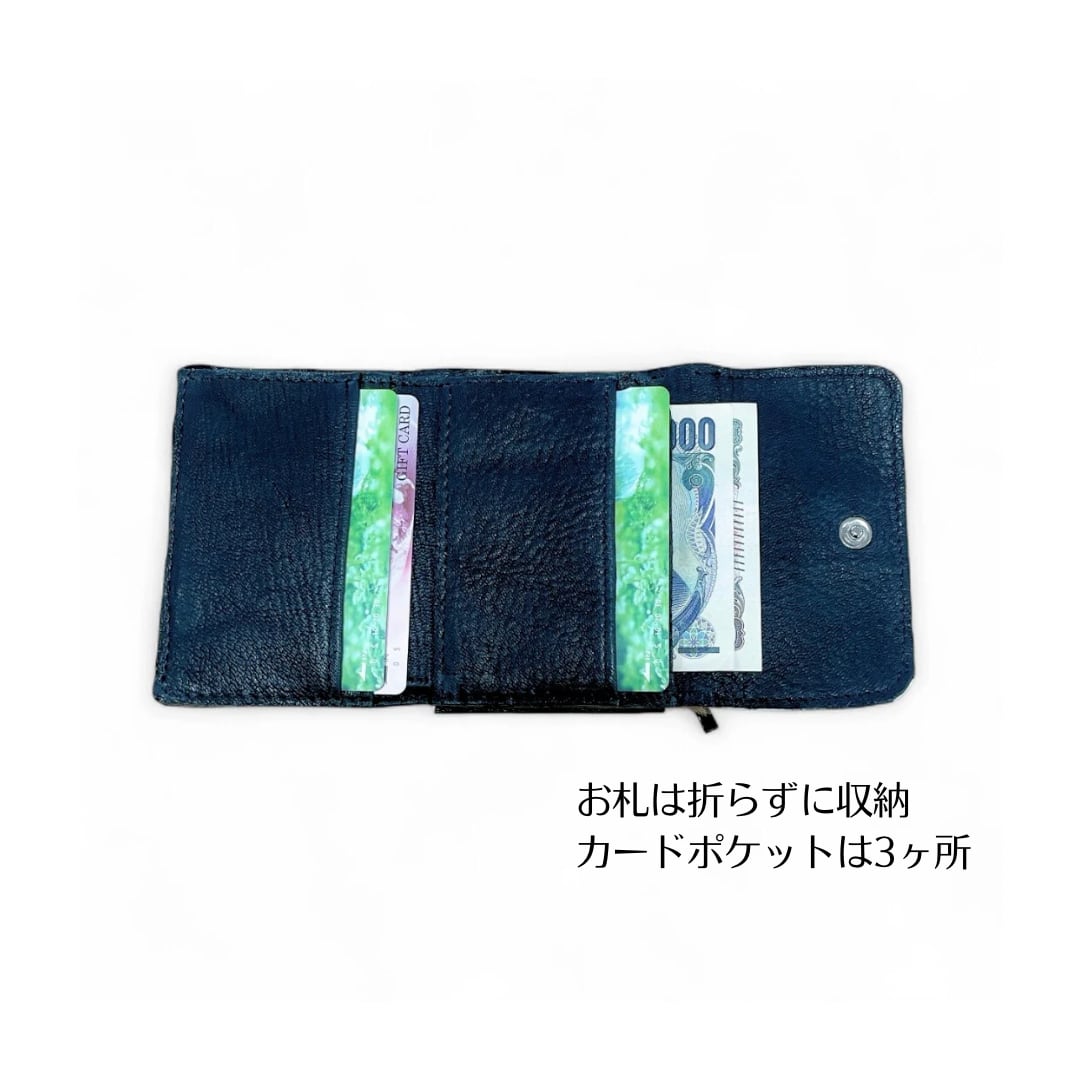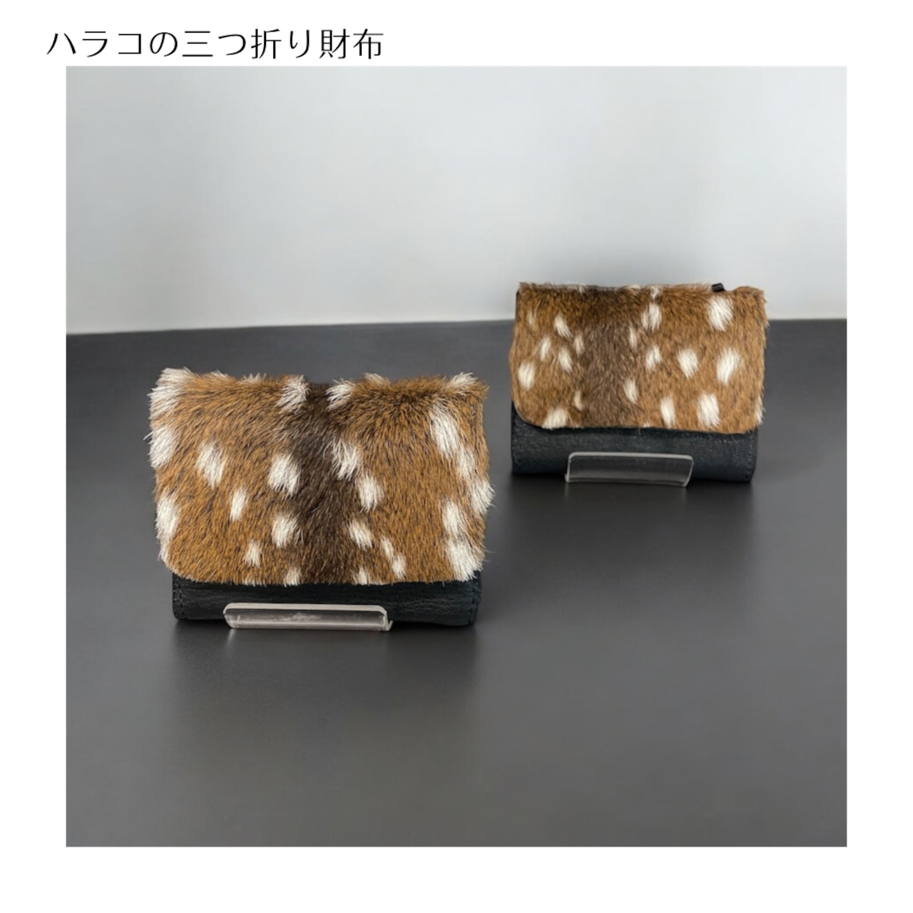 鹿革とハラコを贅沢に使用した3つ折り財布は、スタイリッシュで機能的なデザインが魅力です。