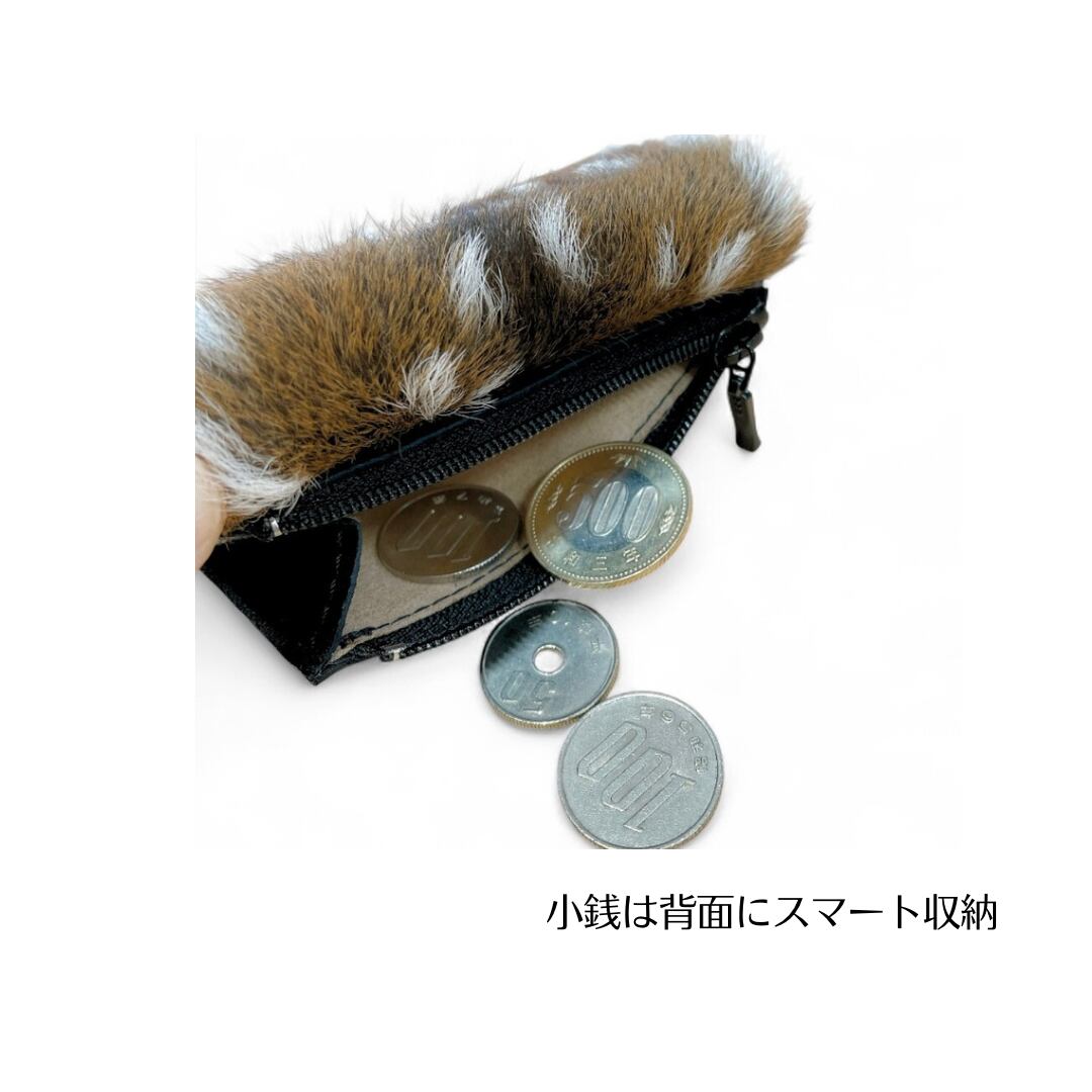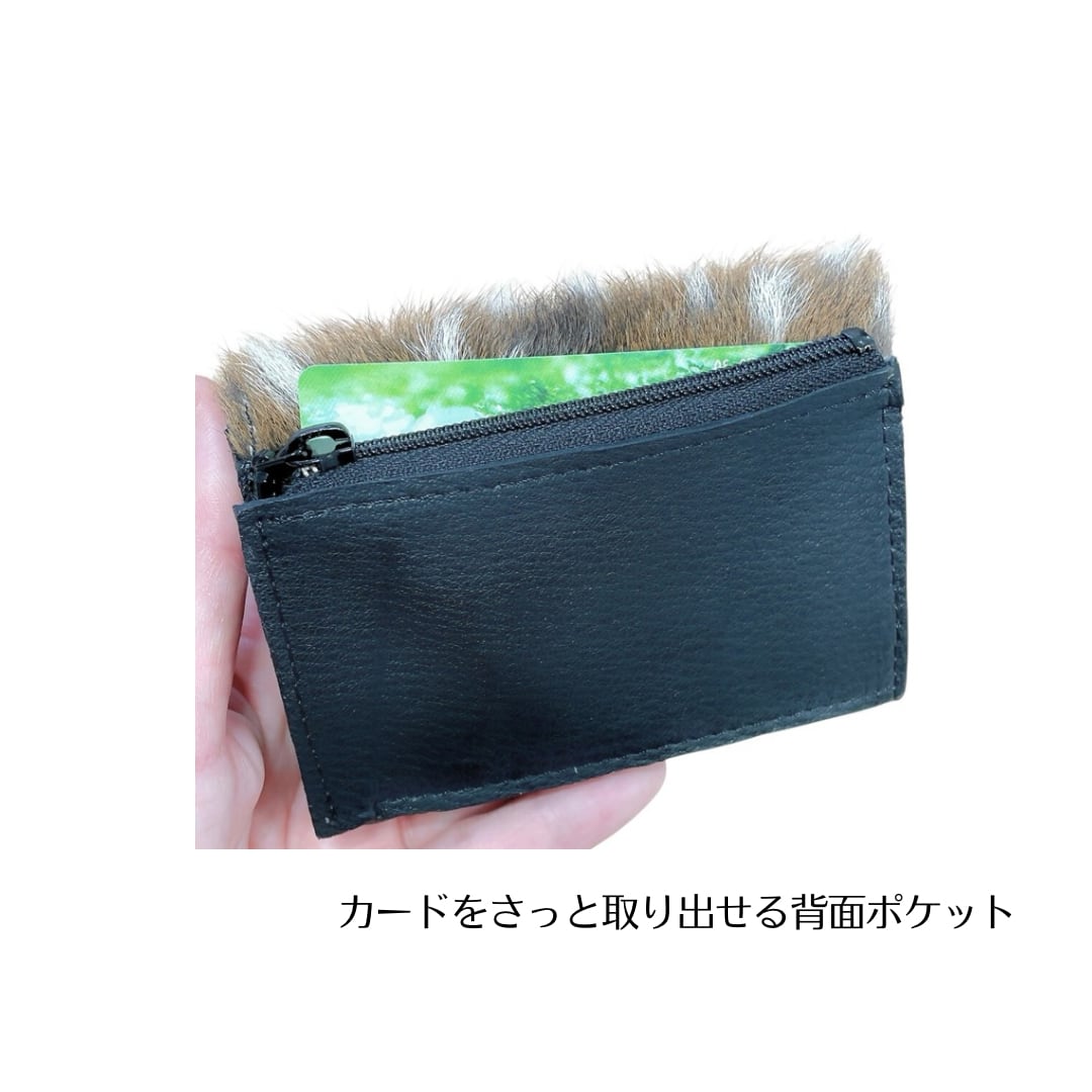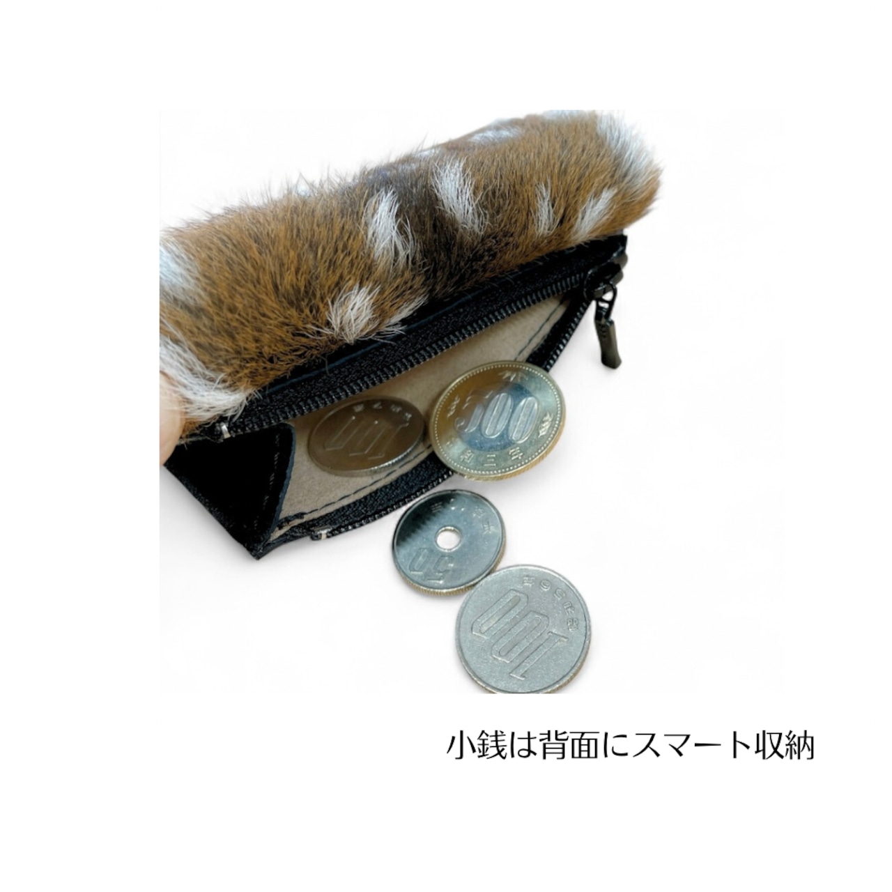 背面には取り出しやすいカードポケット1ヶ所と、ファスナー付きの小銭入れを完備。