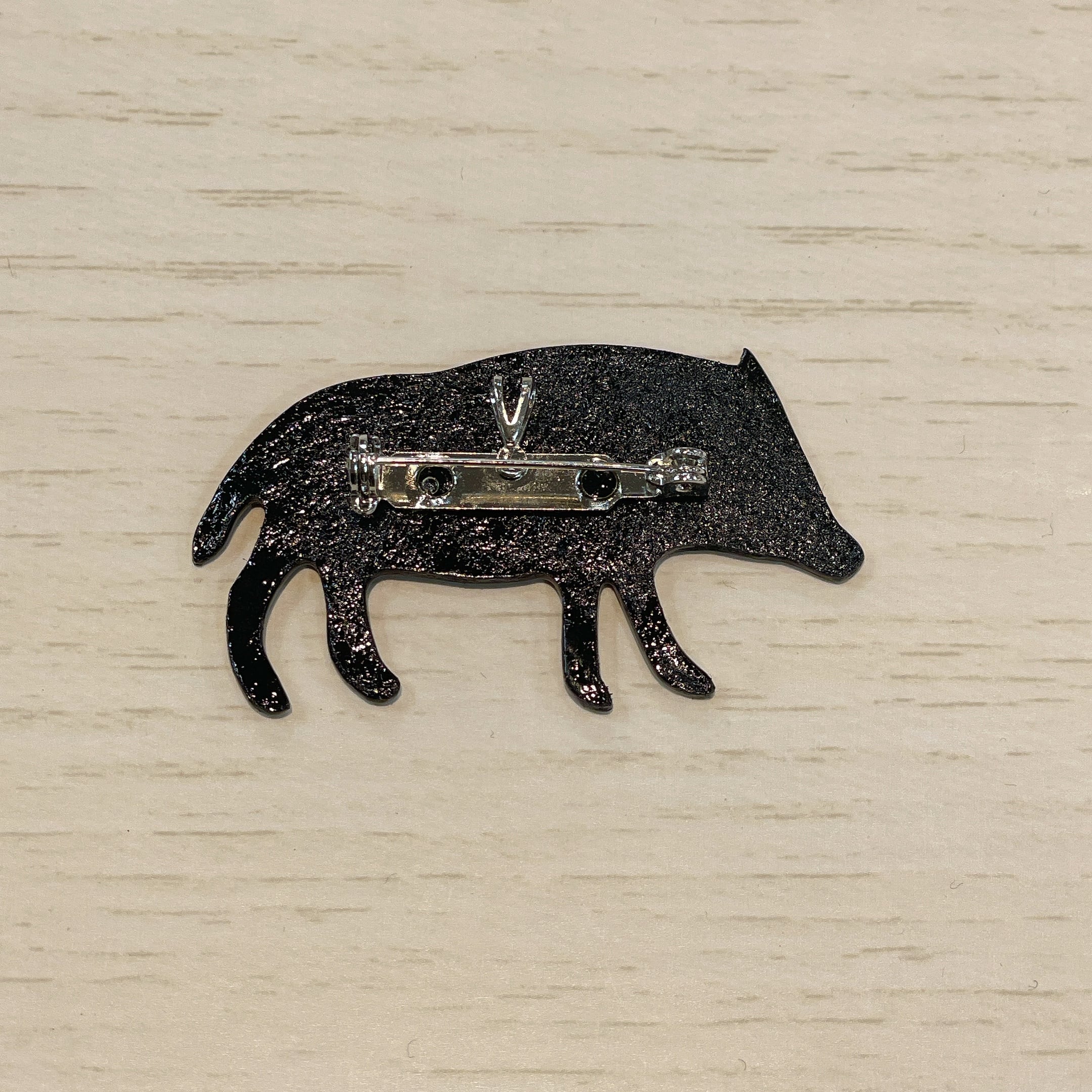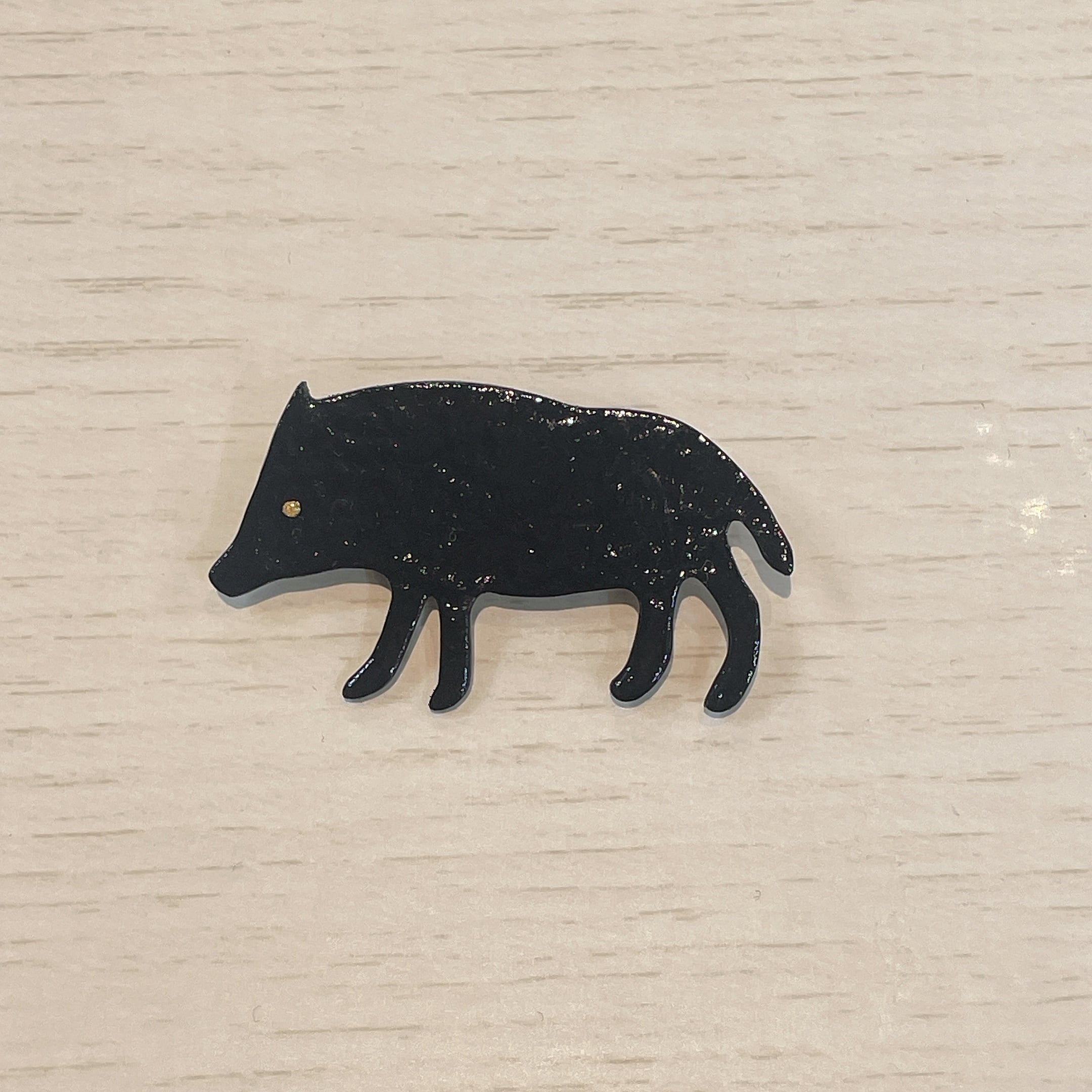 鹿革に漆を丁寧に塗り上げた漆皮のブローチ。とても軽く、洋服への負担を感じさせません。漆の光沢感が加わることで、品のある印象を醸し出します。