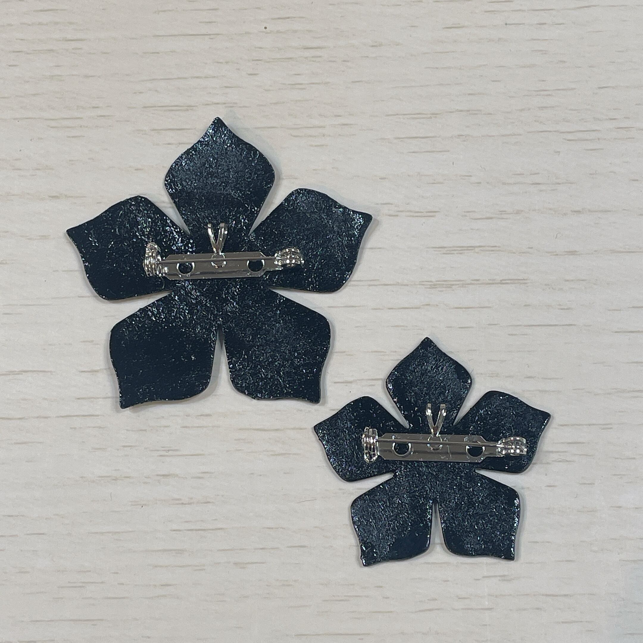 鹿革に漆を丁寧に塗り上げた漆皮のブローチ。とても軽く、洋服への負担を感じさせません。漆の光沢感が加わることで、品のある印象を醸し出します。